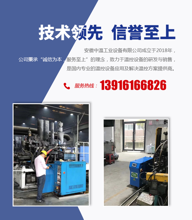 安徽中溫工業(yè)設備有限公司成立于2018年,公司秉承“誠信為本,服務至上”的理念,致力于溫控設備的研發(fā)與銷售,是國內(nèi)專業(yè)的溫控設備應用及解決溫控方案提供商。